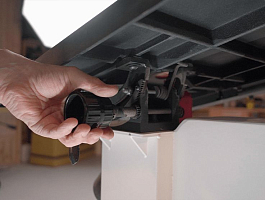 Перемещением стола устанавливается угол пиления.