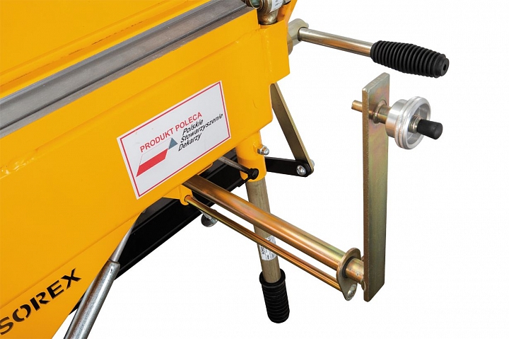 Задают фиксированный размер подачи листа из листогиба с фронтальной части станка для последующей резки роликовым ножом.