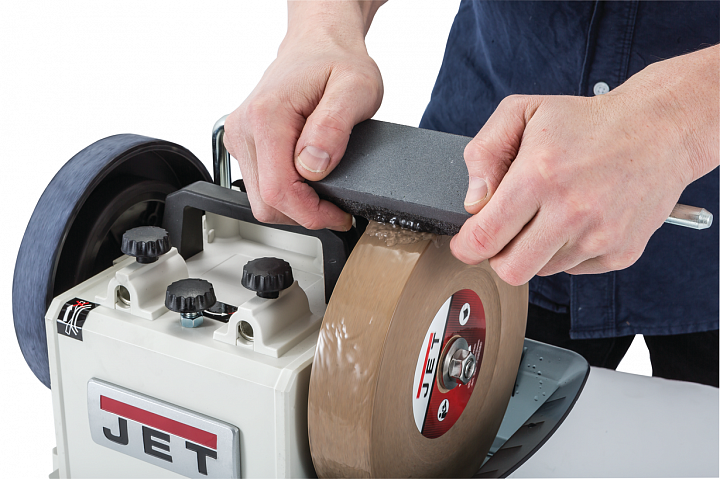 Двусторонний брусок JET для очистки и правки шлифовального круга с грубой шероховатой и гладкой мелкозернистой поверхностями.
